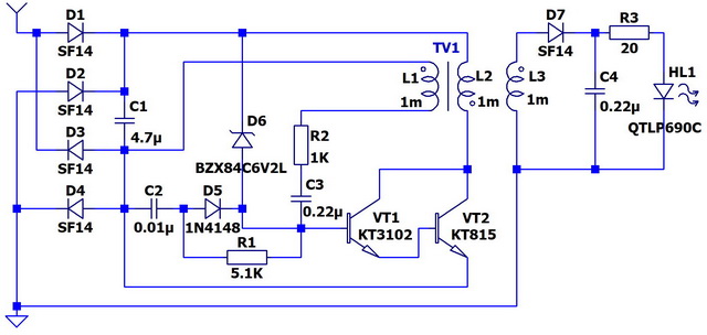 Хочу добавить к ним ещё одну, самую простую из схем с дросселем. Она показана на рисунке 5.1.