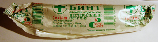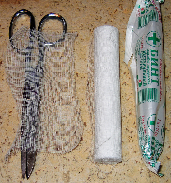 Бинт извлекается из упаковки на чистую поверхность, от него отрезается ножницами кусок длиной в 5-6 погонных сантиметров. Оставшаяся часть возвращается в упаковку для использования в будущем.