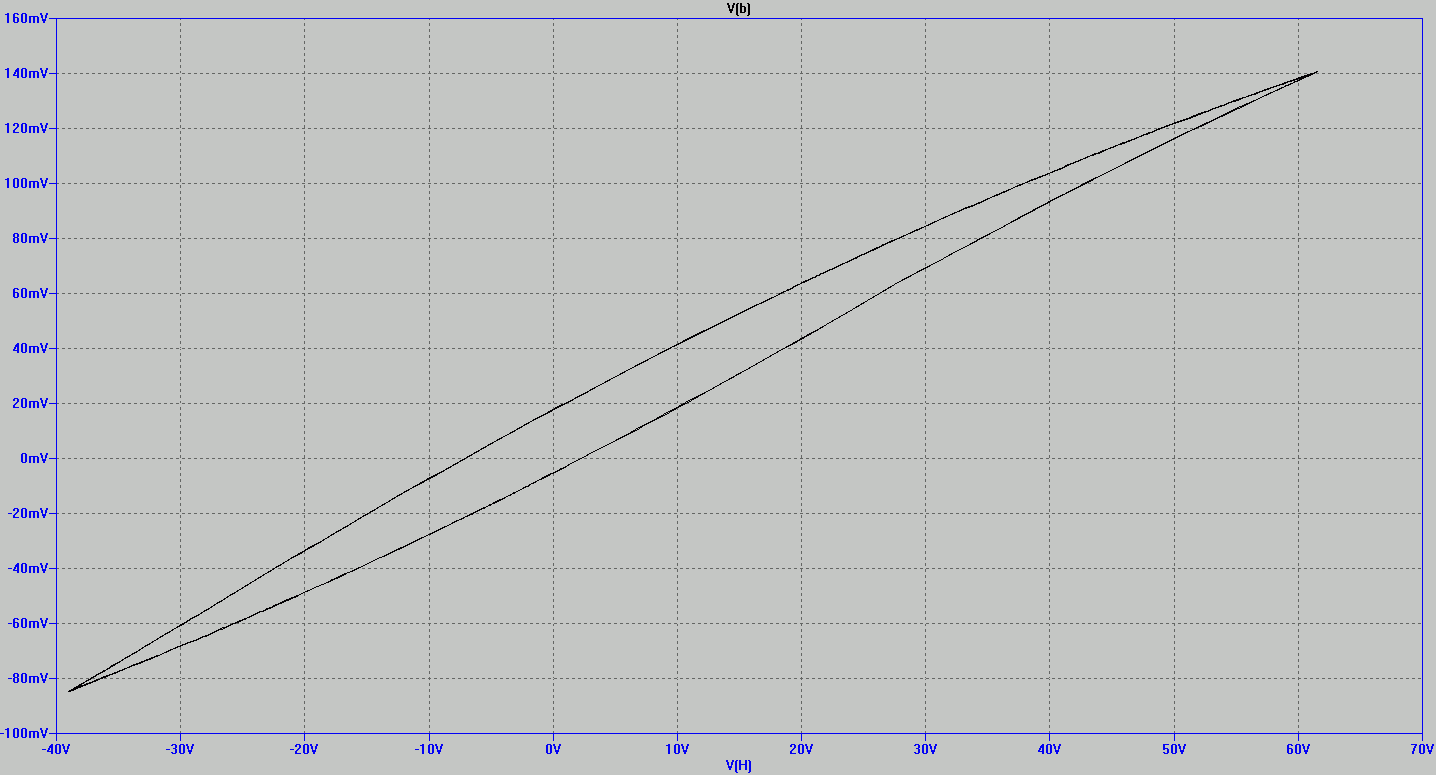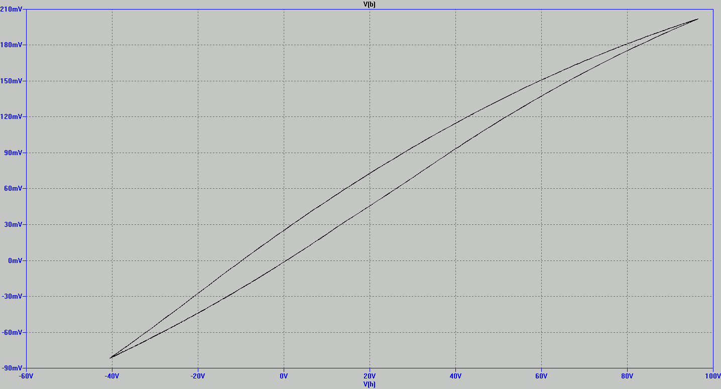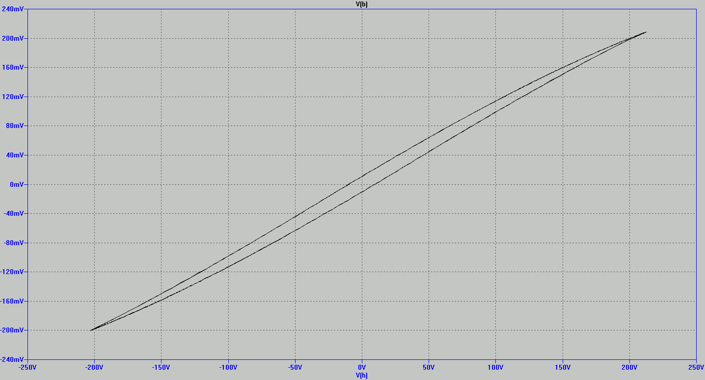 и кликаем "ОК". Теперь на схеме модели кликаем по выводу "B" элемента U5 и наблюдаем петлю гистерезиса:
