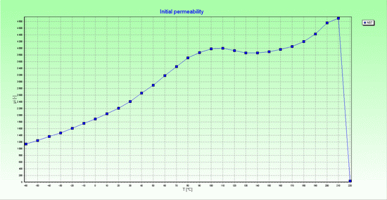 следует, что магнитная проницаемость сначала растёт до температуры 100 °С, после чего до температуры 160 °С не увеличивается. В диапазоне температур от 90 °С до 160 °С изменяется не более, чем на 3 %. То есть, параметры трансформатора, зависящие от магнитной проницаемости в этом диапазоне температур наиболее стабильны.